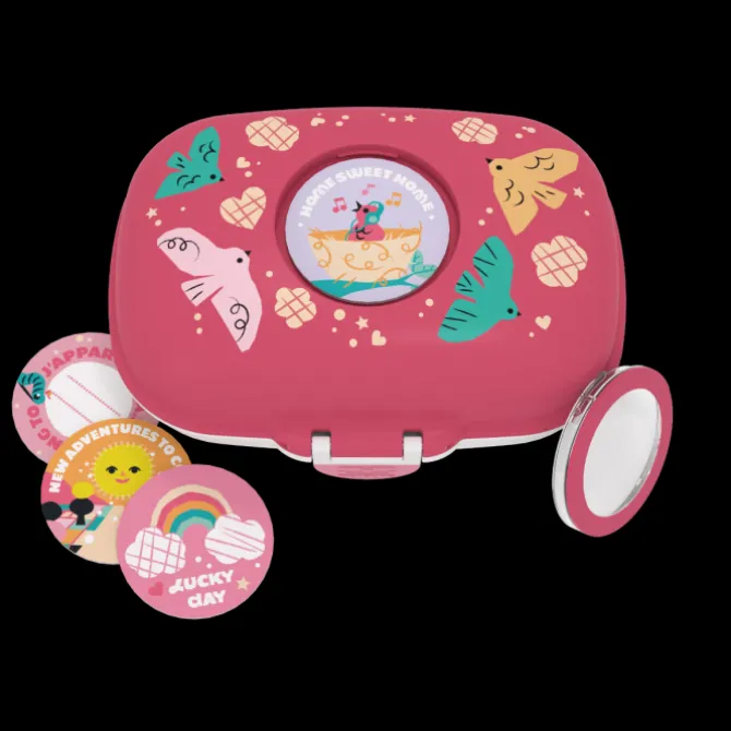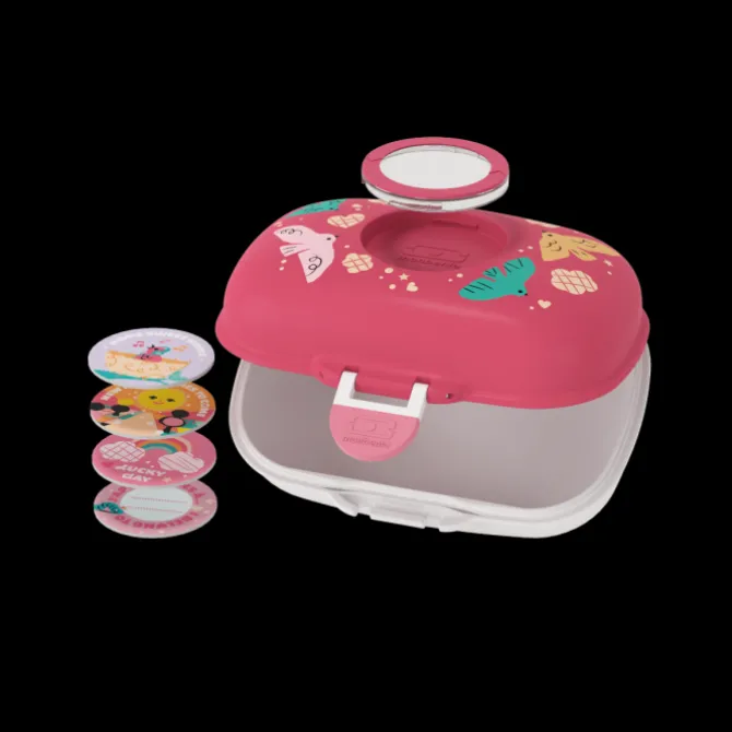 Pour une pause goûter remplie de bonheur, de gourmandises et de couleurs vitaminées, les enfants pourront compter sur les petits oiseaux de leur boite a gouter personnalisable MB Gram rose Birds !