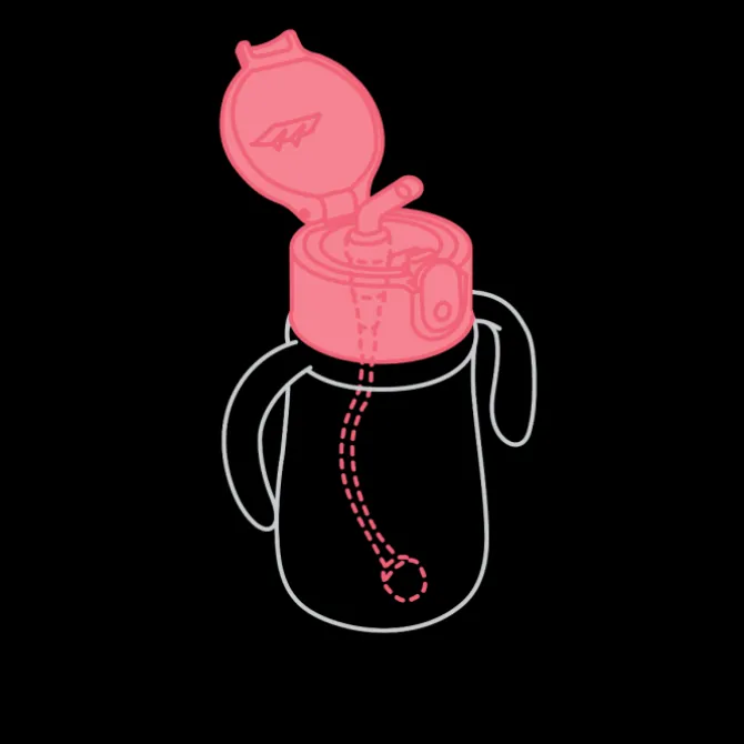 Il est équipé d’une paille lestée permettant de boire dans toutes les positions. Elle est amovible et est protégée par le couvercle lors du transport pour une hygiène optimale.