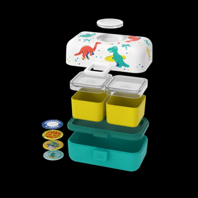 Peu importe ce que votre mini aventurier préfère, les dinosaures super cool de la boite repas enfant MB Tresor bleu Dino l'accompagneront dans toutes ses expéditions gourmandes !